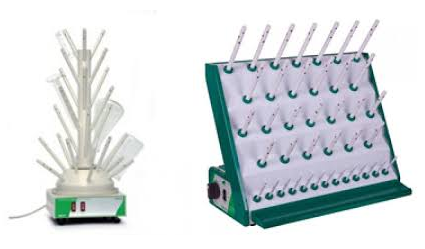 Сушка воздухом. Вымытую посуду можно высушить струёй воздуха. Сушить можно как холодным, так и нагретым воздухом. В современных лабораториях встречаются разные модификации устройств для быстрого просушивания химической посуды в потоке теплого воздуха (рисунок 3.4). Они оснащены фильтром (для исключения загрязнения вымытой посуды), часто имеют таймер, в некоторых для экономии рабочего пространства на столах предусмотрена возможность крепления к стене.