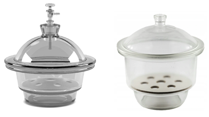 Сушка в эксикаторе. В случаях, когда нужно принимать особые меры защиты вымытой посуды от загрязнения веществами, содержащимися в воздухе, мелкие стеклянные изделия сушат в эксикаторах и вакуум-эксикаторах (рисунок 3.5), заполненных силикагелем, хорошо адсорбирующим пары воды.