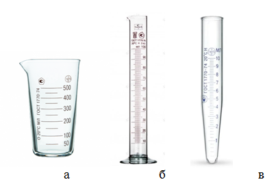 а) для грубого измерения объемов – мензурки, цилиндры, градуированные пробирки (рисунок 4.1);