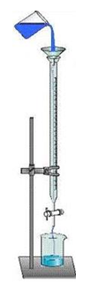 4.1.3 Правила работы с бюреткой. Бюретка – цилиндрическая стеклянная трубка с делениями, открытая сверху, а внизу с запорным механизмом, проградуированная в миллилитрах. Бюретки позволяют точно измерить объём жидкого реактива во время титрования или других манипуляций. Для работы в лабораториях бюретки укрепляют в лапках металлического штатива строго вертикально.