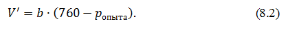 3) Используя таблицу 8.2 рассчитать поправку на давление V', (мл) по формуле