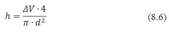 7) Сделать вывод о пригодности пипетки для работы по результатам сравнения найденной поправки с пределами допускаемых погрешностей. 8) Если погрешность выходит за пределы ошибок, допустимых при химических анализах, то пипетку необходимо поправить. Для этого либо помечается на пипетке её истинный объём, либо на пипетку наносится новая метка, соответствующая номинальному объему. Высота добавляемого столба жидкости (h, мм) рассчитывается по уравнению (8.6)