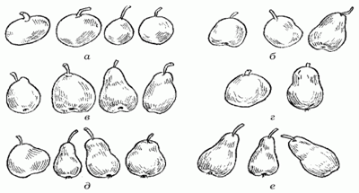 - жеміс пішіні: дөңгеленген, жұмыртқа тәрізді, конусты, сопақ, алмұрт тәрізді, бөтелке тәрізді-алмұрт тәрізді (2.4-рсурет);