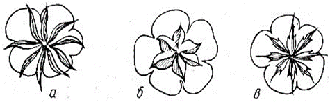 Бүлдіргеннің тағы да мінездемелік сорттық белгілеріне гүлінің мөлшері мен пішіні, жапырақ тостағаншасының мөлшері (2.8-сурет), гүл сағағының түктенуі, жапырақшалардың түсі мен түктенуі және т.б. жатады.