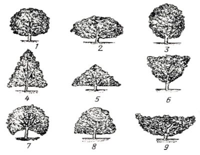 Алманың бөрікбасы пішіні бойынша әртүрлі және келесідей типтерге бөлінеді: тақтайшалы, дөңгелек, пирамидалы, жалпақ пирамидалы, сыпырғыш тәрізді, шашақты, сопақ, шар тәрізді. (2.2-сурет).