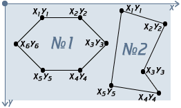 Өздігінше бірінші ауданды жазыңыз (алты бұрыш) - x1=54, y1=20, x2=109, y2=20, x3=147, y3=58, x4=109, y4=96, x5=54, y5=96, x6=16, y6=58.