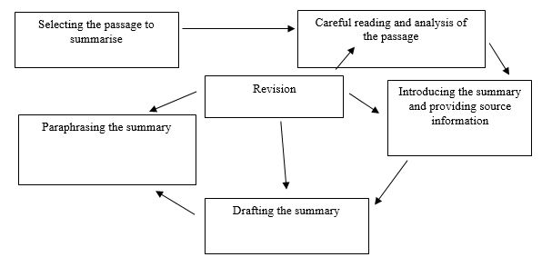 To revise your summary, you have to go through some of the same steps that are discussed in the case of paraphrasing in the previous chapter. In addition to these, your aim with a summary being to shorten a text, you should try to write the most concise version of the source text that you can while keeping all the relevant essential information. If you have chosen to reorder the ideas in the summary, you also have to make sure that you do not distort the original message and that your organization of the ideas is logical and allows you to fit the summary into your own writing.