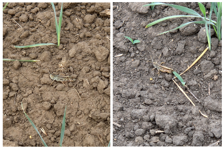 Саранчовые вредят всем сельскохозяйственным растениям в и стадии личинки и имаго (рисунок 28). Развивается одно поколение в год. Зимуют яйца в кубышках в верхнем слое почвы. Каждая самка откладывает по 2–3 кубышки. Сроки отрождения каждого вида зависят от рельефа местности, влажности, прогреваемости участков. По мере роста личинок увеличивается площадь их обитания. Взрослые саранчовые перелетают на большие расстояния. Личинки и крылатые нестадные саранчовые перелетают на небольшие расстояния, в основном в поисках пищи и мест для откладки кубышек. Из саранчовых чаще встречался итальянский прус, или итальянская саранча (Calliptamus italicus), генерация одногодовая. Зимуют кубышки в почве на глубине 2–5 см. Отрождение личинок начинается с середины мая и до начала июля. Массовое появление их наблюдается при прогреве почвы выше плюс 23 °С. Появление молодых особей отмечается во второй половине лета.