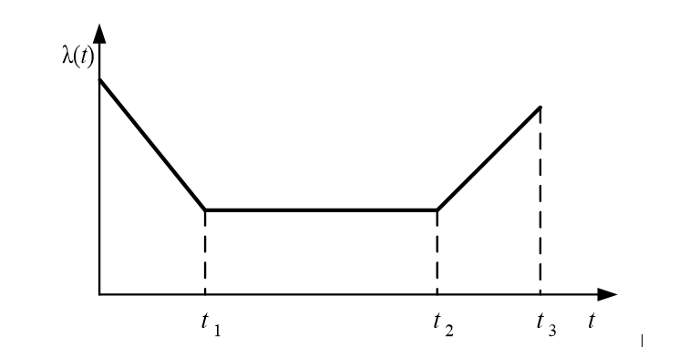 Ықтималдық теориясы тұрғысынан λ(t), егер осы уақытқа дейін өнім үздіксіз жұмыс істеген болса, t моментіндегі сәтсіздіктің шартты ықтималдығының тығыздығы бар (3.3 сурет)