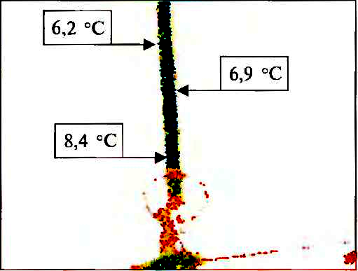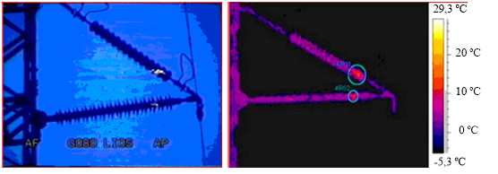 5.10 - сурет. Жоғары атмосфералық ылғалдылықтағы фарфор оқшаулағыштарының гирляндаларының термограммасы