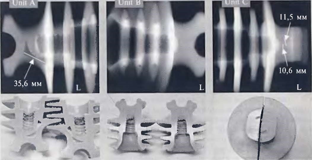 5.13 - сурет. Рентгенография (жоғарыда) және түйреуіш полимерлі оқшаулағыштардың пайда болуы (төменде)