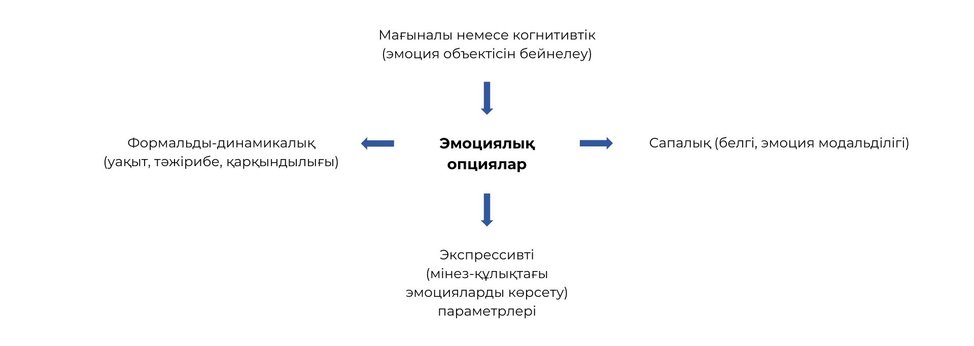 Эмоционалдық процесс эмоциялардың негізгі үш құрамдас бөлігін қамтиды [2].