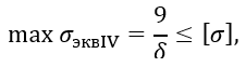 Как следует из этой эпюры (рис. 1.29, б), σэквIV максимально для нижней точки резервуара. Условие прочности имеет вид
