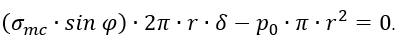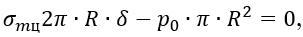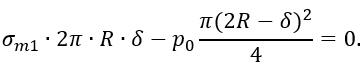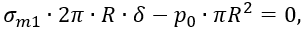 σm∙2πR∙δ-p∙π∙R2-G=0