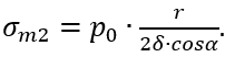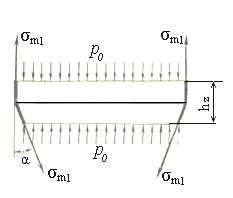 Поскольку реакция опоры отсутствует (резервуар считается невесомым) и давления р0 сверху и снизу взаимно уравновешиваются, то равновесие возможно лишь при условии (σm2∙cosα) = σm1. Разумеется, этот вывод верен лишь в том случае, если толщины обеих оболочек одинаковы.