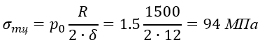 Полагая в уравнении Лапласа ρm=∞, ρ0=R и p=p0, найдем окружное напряжение σtц для цилиндрической части газгольдера