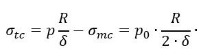 Скачок в величине σt определяется скачком в величине p0 в уравнении Лапласа, которое для обеих оболочек принимает вид