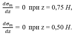 Для построения эпюр необходимо определить точки экстремумов функций σm (z) и σt (z) на втором участке.