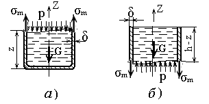 где р = γ z – гидростатическое давление жидкости на уровне z;