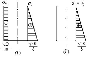 Эпюры напряжений σm и σt показаны на рисунке 1.21,а.