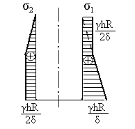 Рисунок 1.16 – Эпюры напряжений в стенках резервуара