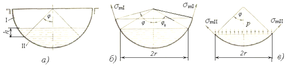 а) цилиндрическая часть; б) сферическая часть
