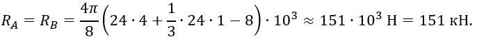 Из условия равновесия сил, действующих на сосуд, из уравнения Σу=0 (рисунок 2.6, а), учитывая, что RA = RB, получим