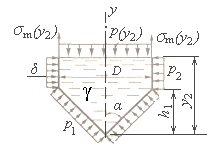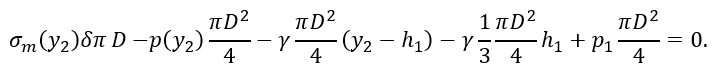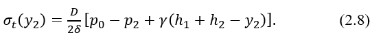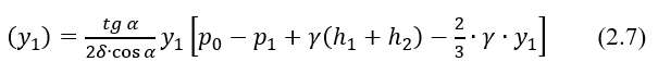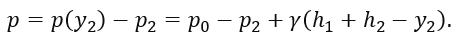 Подставляя значение внутреннего давления p(y2)=p0+γ(h1+h2-y2 ) и произведя сокращения, получим