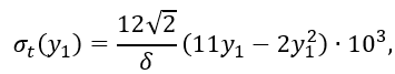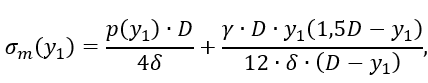 при y1 = h1 = 1 м, σt = 152/δ кПа, σm = 82/δ кПа.