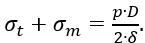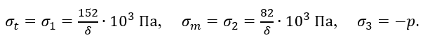 При расчете на прочность не будем учитывать влияние р ввиду его малости по сравнению с напряжениями σt и σm.