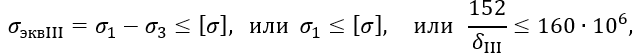 Тогда, считая напряженное состояние плоским из условия прочности по гипотезе максимальных касательных напряжений (III гипотеза прочности)