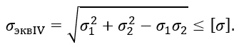 Для сравнения по гипотезе удельной энергии формоизменения (IV гипотеза прочности) при плоском напряженном состоянии, полагая σ3≈0,