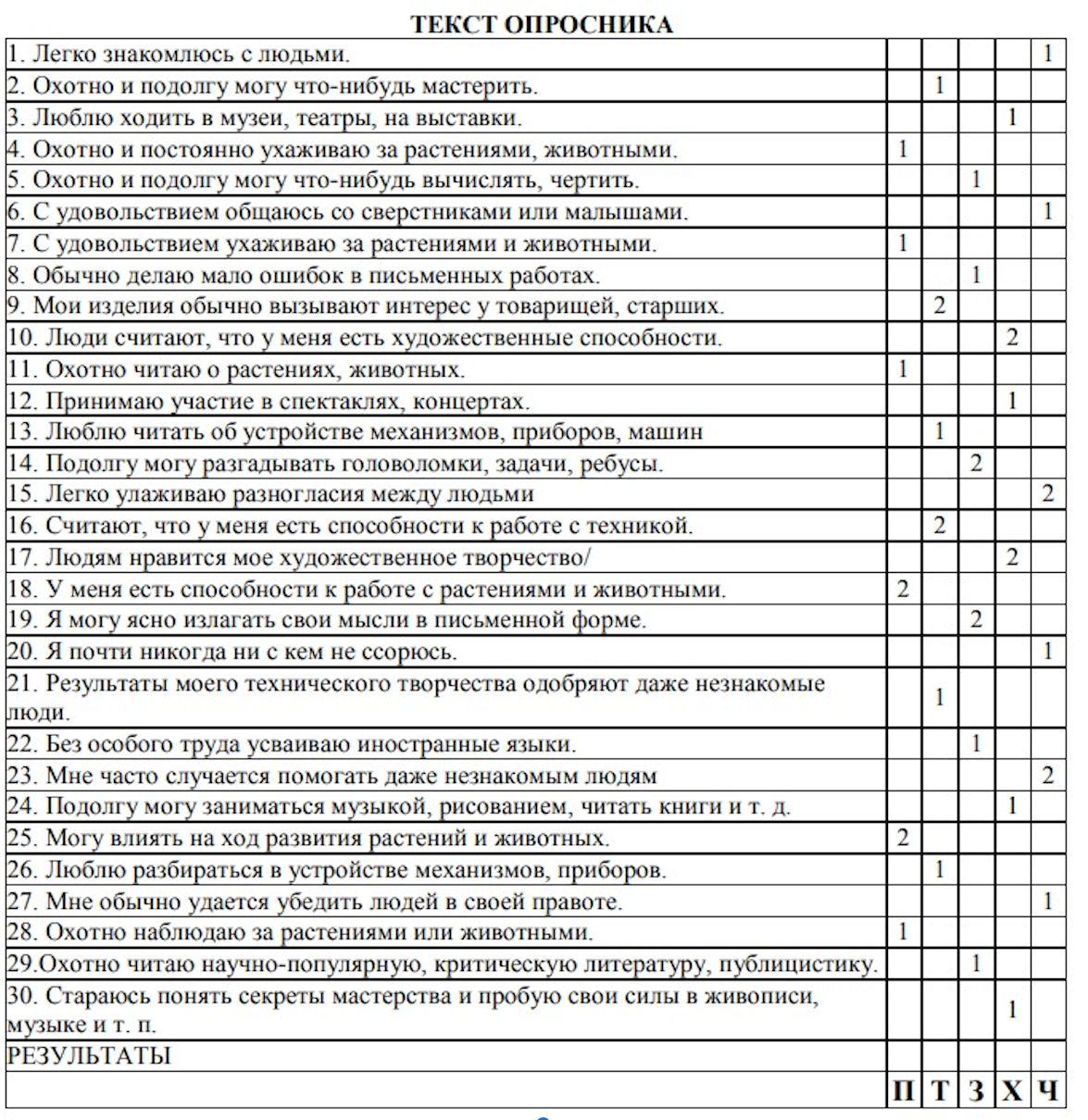 Максимальное количество плюсов указывает на твою принадлежность к одному из шести профессиональных типов.