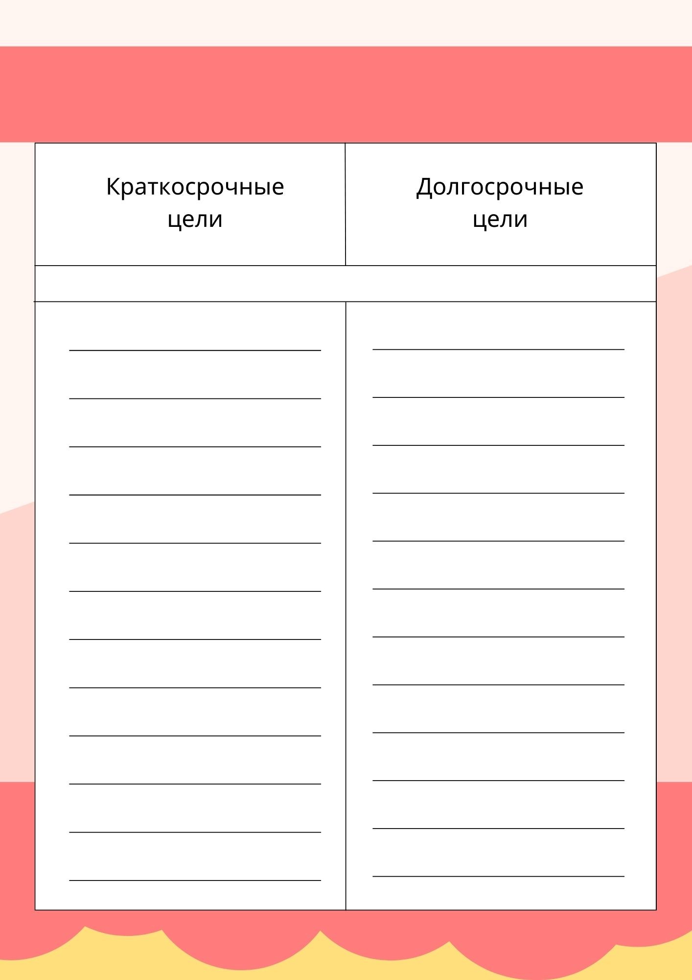 Отлично! Теперь давай попробуем составить список краткосрочных и долгосрочных целей.