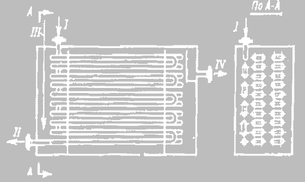 I – мұнай өнімдерінің булары; II – салқындатылған мұнай өнімі; III – суық су; IV – қыздырылған су