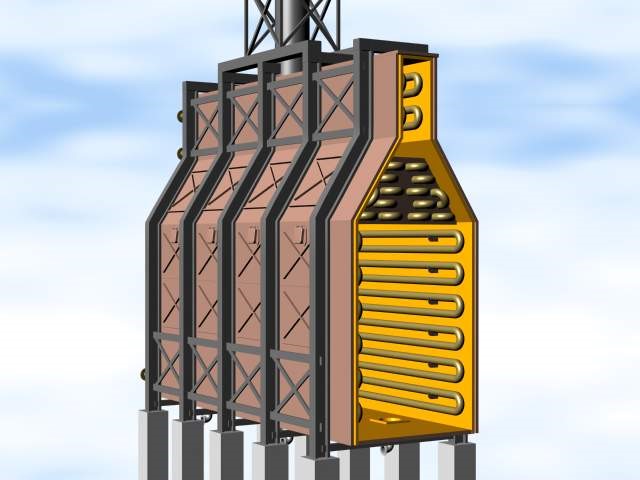 Құбырлар Арка, бүйір, алдыңғы және алдыңғы қабырғаларды, сондай-ақ пештерді қорғайды. Бір қатарлы және екі қатарлы экрандар бар. Суретте раманың қорап тәрізді пеш көрсетілген.