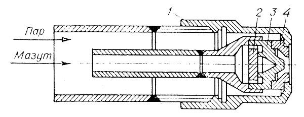1 – гайка; 2 – тарату шайбасы; 3 – отын құйғышы; 4 – бу құйғышы.