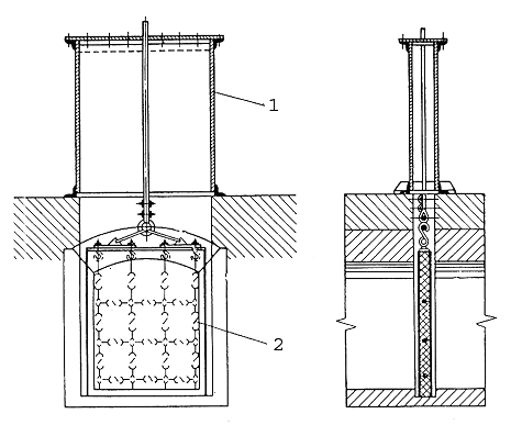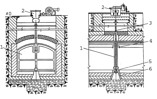 1 – іргетас; 2 – отқа төзімді футеровка; 3 – құбыр оқпаны; 4 – алаң; 5 –газ жолы; 6 – жайтартқыш; 7 – жерге тұйықтау; 8 – саты