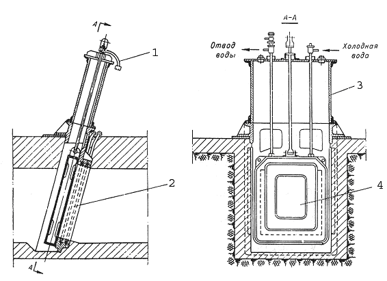 1 – плита; 2 – суық су беру құбыры; 3 – қорап; 4 – шибер