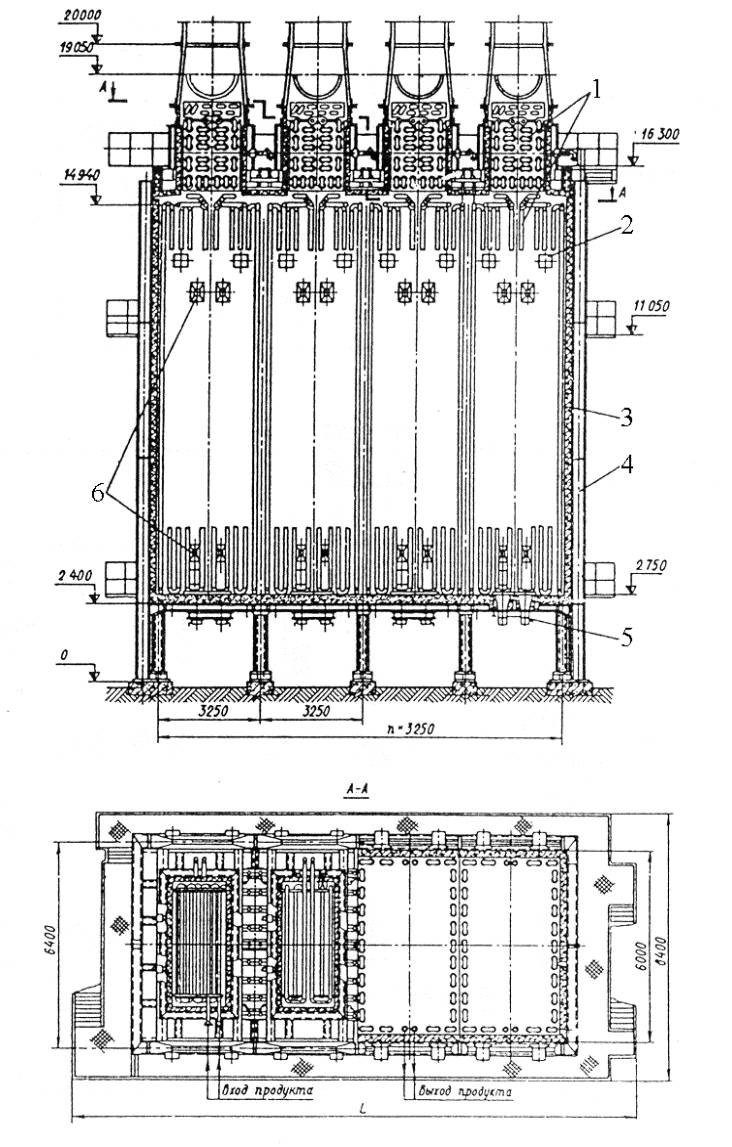 1 – жақтау; 2 – радиантты катушка; 3 – конвективті катушка; 4 – футерлеу; 5 – қыздырғыш; 6 – ауа жылытқышы