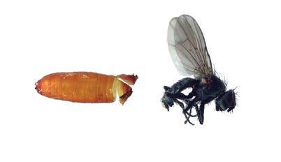 Pupation takes place where the larvae have been feeding, with the pupal stage lasting around two weeks. The emergence of the next generation is influenced by weather conditions; in dry periods, the larvae may enter a state of dormancy. The development of the egg lasts between 4 and 7 days, the larval stage lasts from 10 to 14 days, pupation lasts 10 to 12 days, and the adult flies survive for 5 to 7 days. On average, the species produces 2 to 5 generations annually, with southern Russia typically experiencing 4 generations.